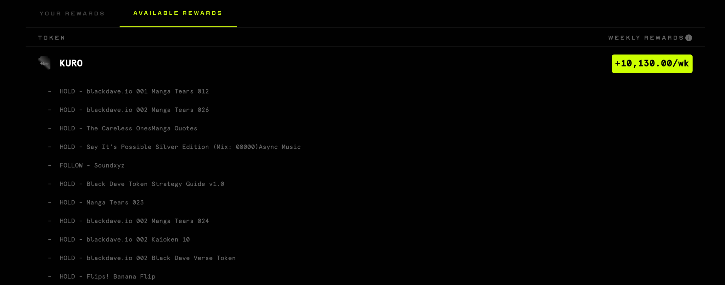 With over 100 web3 engagements offering weekly token rewards, Black Dave uses the KURO Token to unite his community, bridging the gap between his community across Blockchains and Protocols. The token provides him with a comprehensive and ranked view of his web3 community, and provides him with valuable insights into his audience's preferences and behaviors.