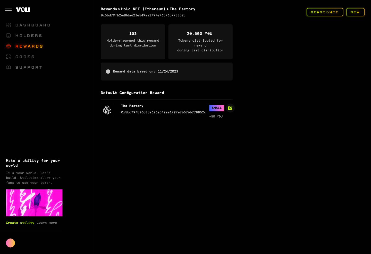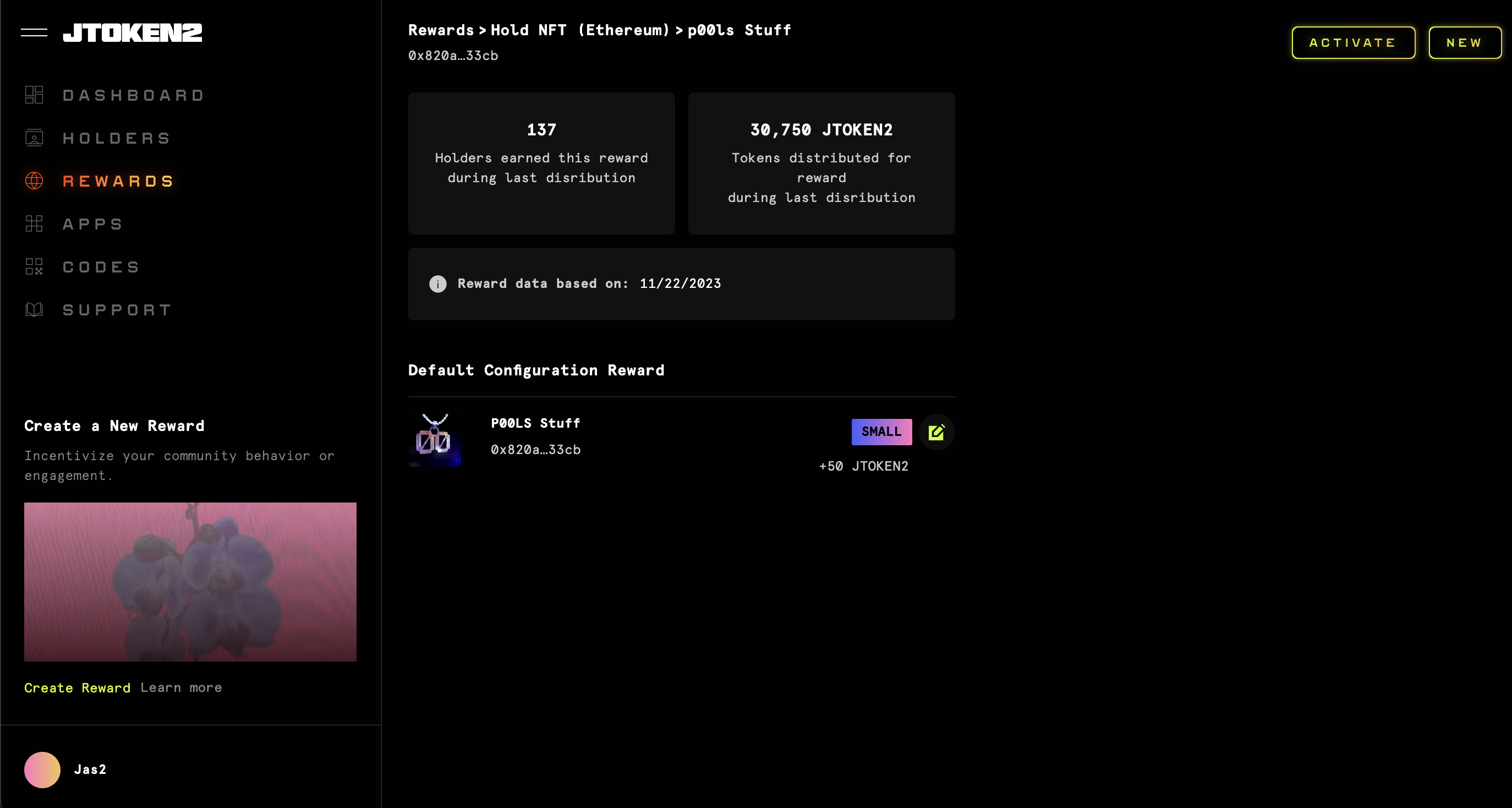 To activate a reward, follow the above steps and click on the **Activate** button that now appears in the upper right corner.