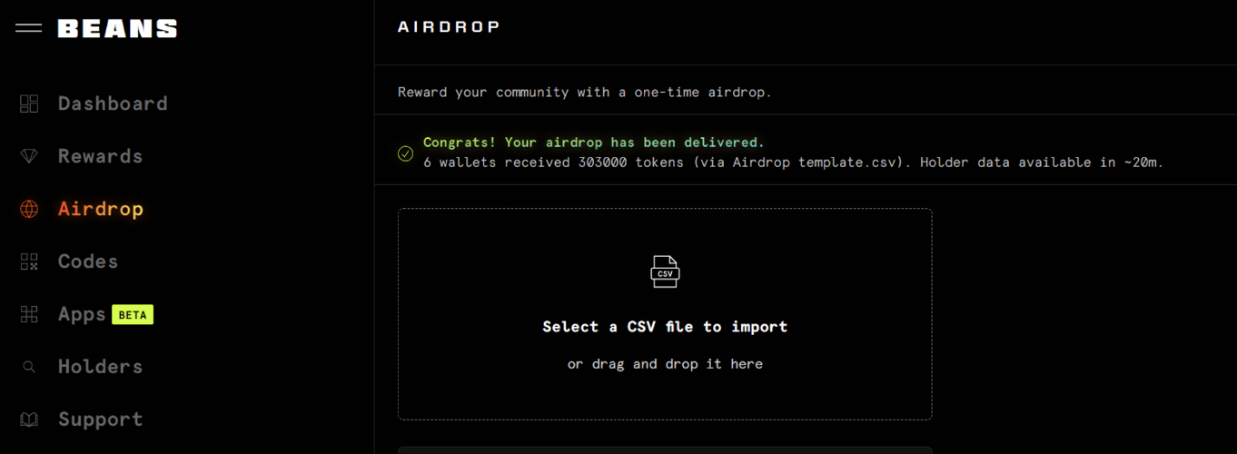 Creators can override their Token Economy and freely send a direct airdrop of tokens to a list of token holders.